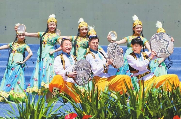 隨著曼妙激昂的舞蹈《石榴花開》上演,這場(chǎng)屬于“花兒”的盛會(huì)正式啟幕。隨后,《雪白的鴿子》《巴西古溜溜》、優(yōu)雅大氣的舞蹈《吉祥歡歌》《絲路民族風(fēng)》《今夜草原有雨》《白牡丹令》等經(jīng)典歌舞節(jié)目精彩上演,贏得臺(tái)下陣陣掌聲。甘肅籍民謠歌手張尕慫帶來的《等風(fēng)來》更是將現(xiàn)場(chǎng)氣氛推向高潮,來自各個(gè)民族的數(shù)千觀眾沉浸在這場(chǎng)非遺文化盛宴中。