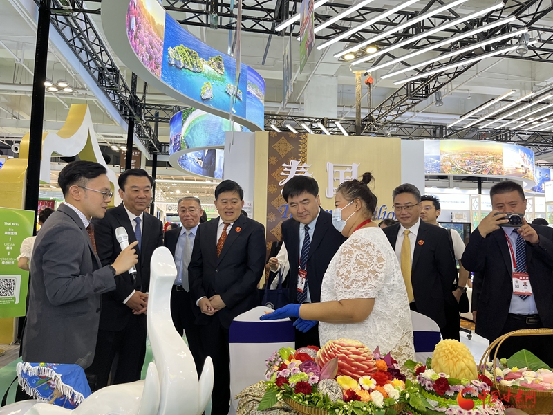 泰國國家館展覽面積300平方米,由泰國駐西安總領(lǐng)事館牽頭組織參展,展區(qū)設(shè)計采用白金色為主色調(diào),簡潔明亮,富有泰國特色。主要展示泰國特色文化、企業(yè)和產(chǎn)品。展館整體劃分為接待區(qū)、洽談區(qū)、舞臺表演互動區(qū)、泰國雕刻體驗(yàn)區(qū)、泰式按摩體驗(yàn)區(qū)、模擬泰國旅游景點(diǎn)拍照區(qū)及產(chǎn)品展示區(qū)等,通過造型、多媒體、圖片及表演等形式,以Food 美食、Fighting 泰拳、Film 電影、Fashion 時尚和 Festival 節(jié)日等多元素,全面展示泰國文化的多元、包容、開放與創(chuàng)新的特點(diǎn)。參展企業(yè)共22家,主要展品涵蓋食品、化妝品、居家用品及保健按摩產(chǎn)品等。