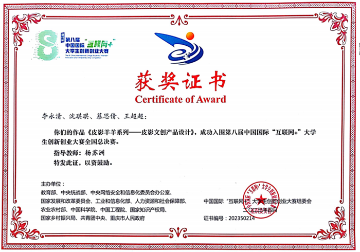 中國甘肅網(wǎng)7月12日訊(西北角·中國甘肅網(wǎng)記者 余守萱 通訊員 郭海霞)近日,從中國國際“互聯(lián)網(wǎng)+”大學(xué)生創(chuàng)新創(chuàng)業(yè)大賽組委會傳出喜訊,由環(huán)縣第二中學(xué)楊蘇洲老師指導(dǎo),學(xué)生李永清、沈琪琪、慕思倩、王超超四人共同創(chuàng)作完成的作品《皮影羊羊系列——皮影文創(chuàng)產(chǎn)品設(shè)計(jì)》,成功入圍第八屆中國國際“互聯(lián)網(wǎng)+”大學(xué)生創(chuàng)新創(chuàng)業(yè)大賽全國總決賽。