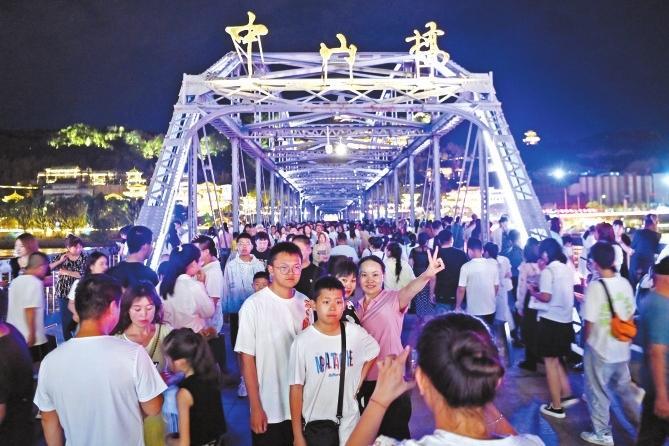入夏以來,全國各地?zé)崂艘u人,但絲路重鎮(zhèn)蘭州以23-26℃的平均氣溫成為各地游客消夏避暑勝地,外來游客涌入金城,尤其是暑假期間呈現(xiàn)出井噴式增長。依托中山橋、白塔山、黃河母親、黃河樓等重要旅游景點(diǎn)資源,黃河之濱成為外來游客打卡首選,“夜游黃河”“黃河頌·大有蘭州”光影秀火爆出圈,沿河茶攤、休閑茶吧、露營基地更是出現(xiàn)“一桌難求”的現(xiàn)象。