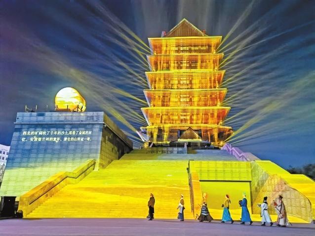 在黃河樓景區(qū),平時(shí)只有周末觀演的“黃河頌·大有蘭州”多媒體實(shí)景演出開啟了為期一個(gè)月的常態(tài)化巡演,每晚9時(shí),璀璨的光影映襯著巍峨雄壯的黃河樓,在3D Mapping多媒體技術(shù)的加持下,帶給游客難忘的光影夜游體驗(yàn)。而近日黃河樓入園游客較平時(shí)也增長了3倍之多,登樓參觀人數(shù)日均達(dá)到3000人次。