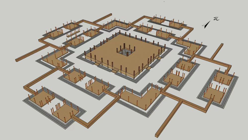 經(jīng)過(guò)近4年考古發(fā)掘工作,四角坪遺址“真容”漸顯。記者跟隨考古專家來(lái)到四角坪遺址,只見(jiàn)整個(gè)遺址坐落在被“削平”的山頂平臺(tái)之上,呈現(xiàn)出中心對(duì)稱的空間分布格局。