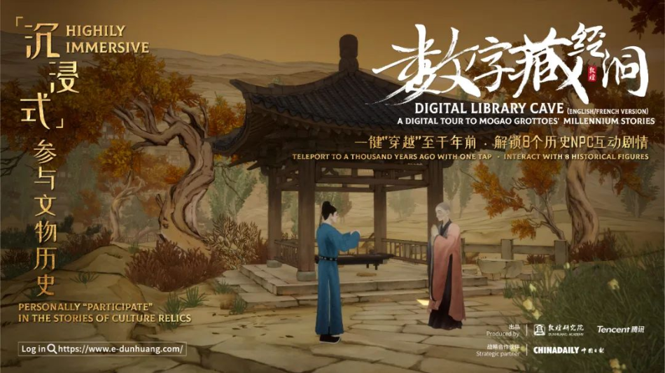 敦煌藏經(jīng)洞是20世紀最重要的考古大發(fā)現(xiàn)之一,曾出土6萬余件古代文獻和藝術(shù)品,被譽為“打開世界中世紀歷史的鑰匙”?;诓亟?jīng)洞出土文物和敦煌石窟等相關(guān)研究,敦煌學逐漸成為一門“國際顯學”。一直以來,敦煌研究院致力于聯(lián)動社會力量,利用現(xiàn)代數(shù)字技術(shù)推動文化遺產(chǎn)數(shù)字化和弘揚優(yōu)秀傳統(tǒng)文化。“數(shù)字藏經(jīng)洞(國際版)”在共建“一帶一路”倡議提出十周年之際率先推出,以“超時空參與式博物館”這一創(chuàng)新形態(tài),豐富了以往以文化展覽、學術(shù)論壇等為主的交流體驗?zāi)J剑C合運用游戲科技,為海外用戶帶來全新的文化體驗。