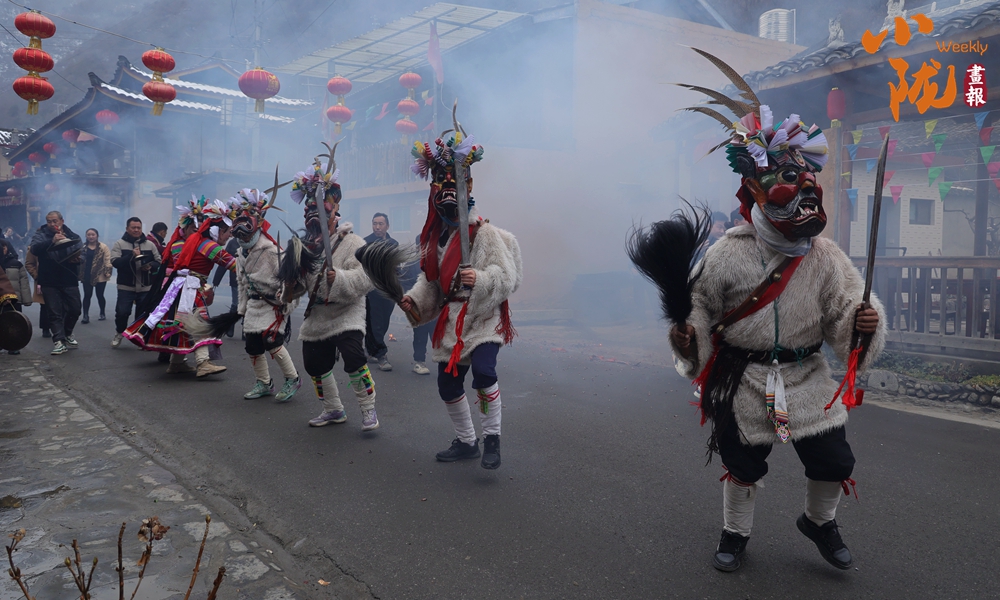 跳舞時,表演者挨家逐戶地歡跳,意在為村民驅(qū)鬼除惡、驅(qū)邪消災、避難免罪、祛邪納祥,迎接新的一年吉祥和順。