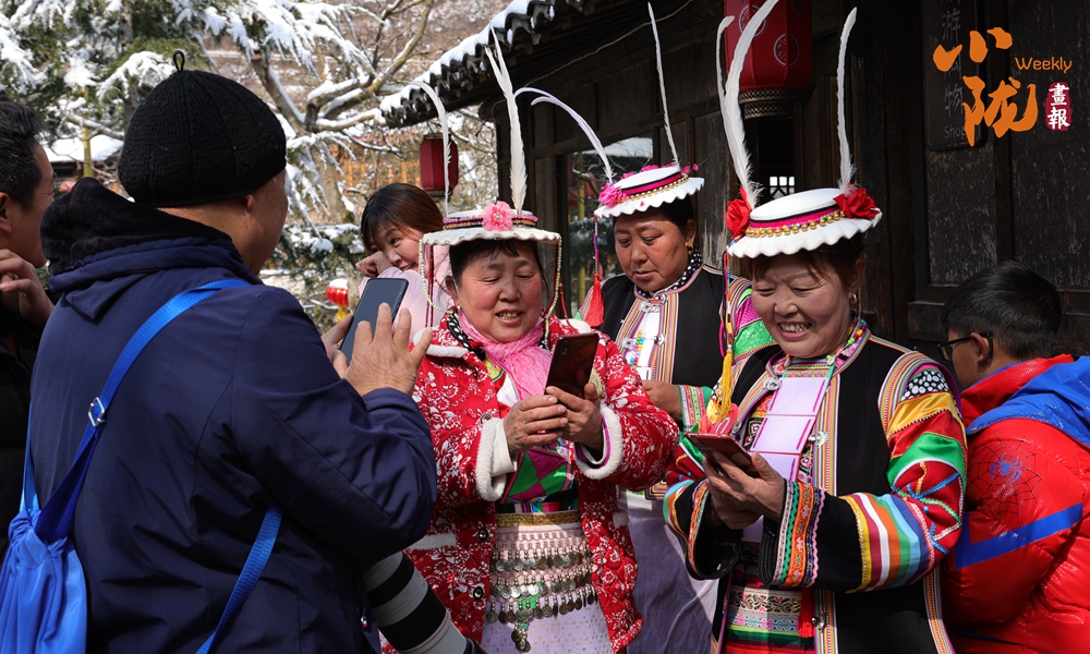 河畔的小路上和河岸的觀景臺上,白馬人身著特色服飾,錯落有致,載歌載舞,跳起了獨具魅力的“池哥晝”。