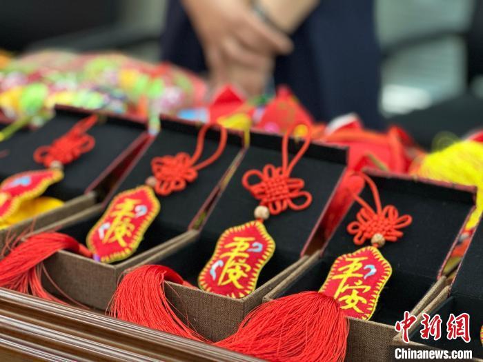5月7日,“甘肅省2024年‘文化和自然遺產(chǎn)日’非遺宣傳展示展銷(xiāo)主會(huì)場(chǎng)系列活動(dòng)暨第十九屆慶陽(yáng)香包民俗文化節(jié)”新聞發(fā)布會(huì)舉行。圖為發(fā)布會(huì)現(xiàn)場(chǎng)展示的香包制品。楊娜 攝