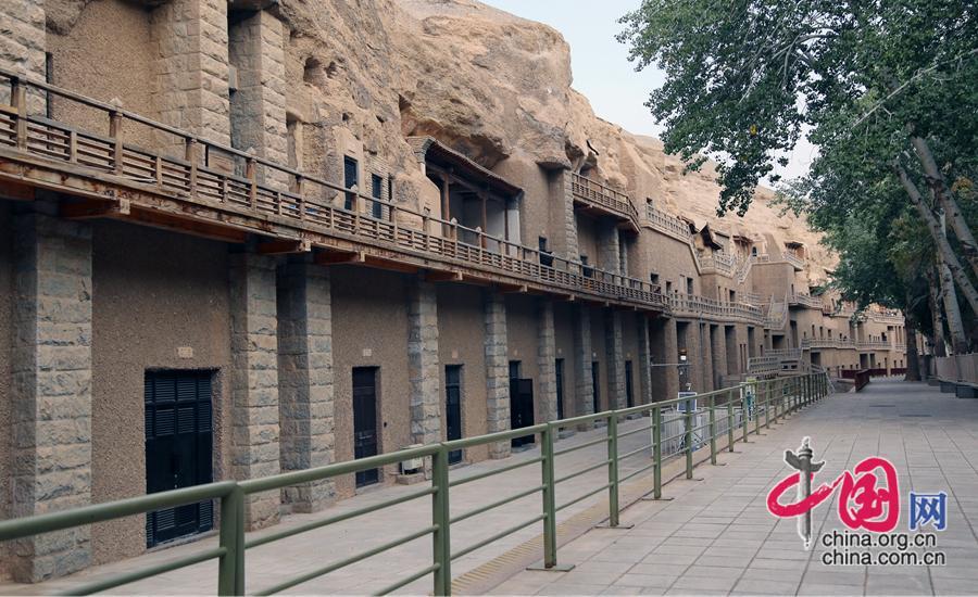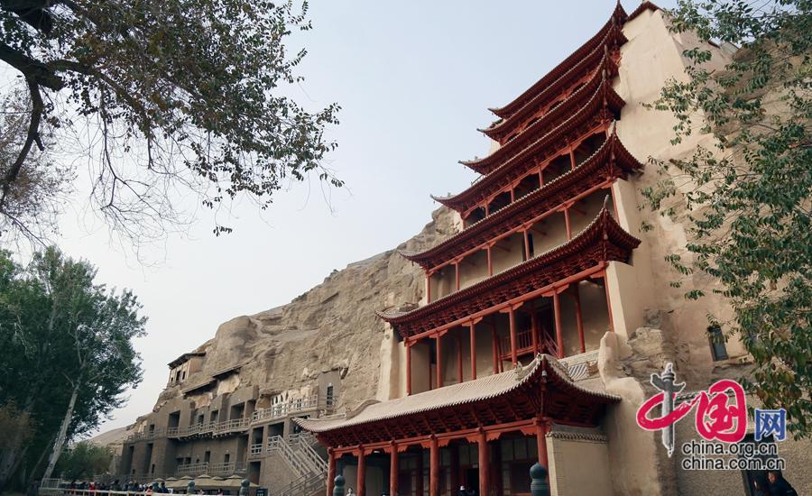 據(jù)敦煌研究院資料顯示,石窟以彩塑為主體,四壁及頂均彩繪壁畫(huà),地面漫鋪花磚,窟外有窟檐(或殿堂)、棧道,窟窟相通相連,是以石窟建筑、彩塑和壁畫(huà)三者合一的佛教文化遺存。