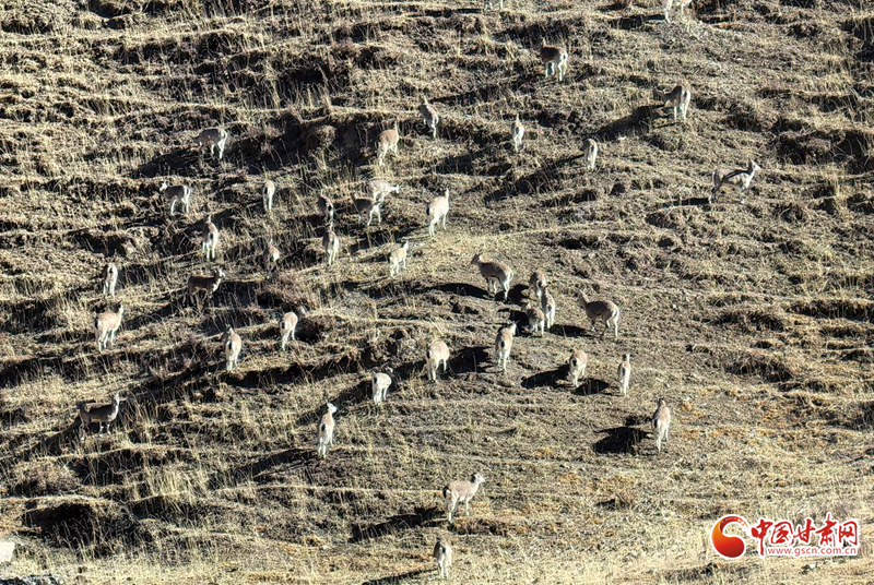近日,民樂縣大河口自然保護(hù)站扁都口資源管護(hù)站人員于高海拔區(qū)域日常巡護(hù)時,邂逅一大群巖羊在山坡覓食、奔跑的珍貴場景,巖羊數(shù)量約50只。