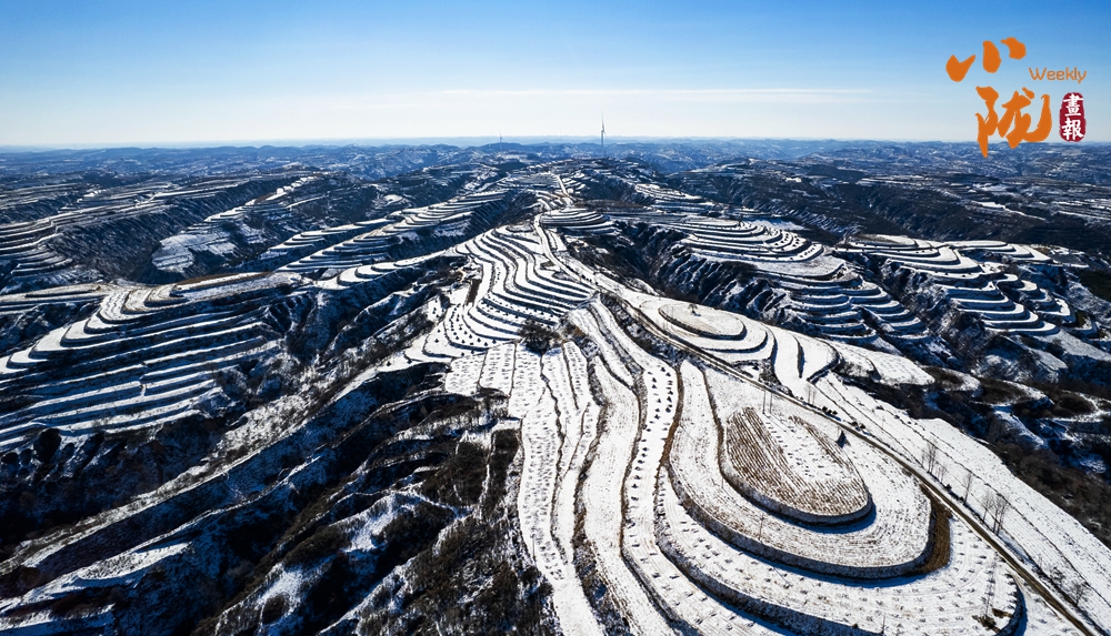 塬上樹木被雪輕輕點染,披上素白衣裳,與覆雪的梯田虛實相映,構(gòu)成一幅疏密有致、氣韻生動的天然水墨畫,靜置于蒼茫天地間。