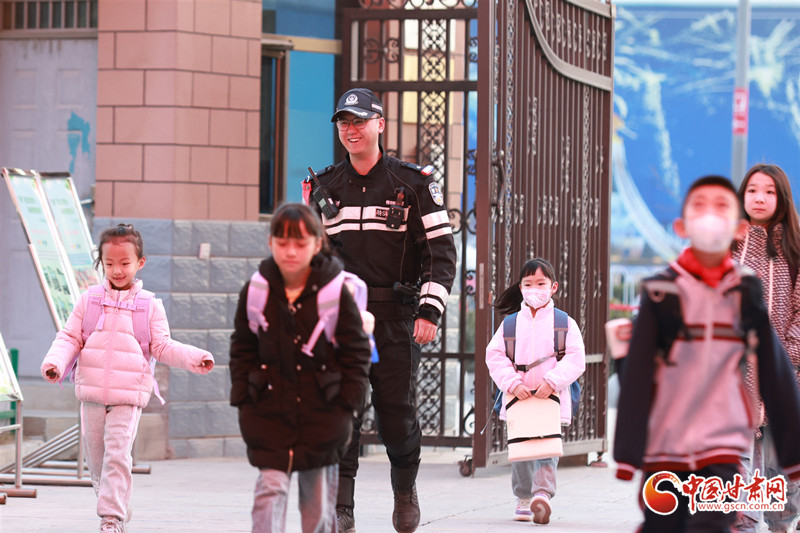 2月25日,蘭州市中小學(xué)開(kāi)學(xué),學(xué)生們走進(jìn)校園,開(kāi)始新學(xué)期學(xué)習(xí)生活,蘭州市公安局交管支隊(duì)城關(guān)大隊(duì)輔警在城關(guān)區(qū)水車園小學(xué)民勤街分校,為學(xué)生們講解交通安全知識(shí)。