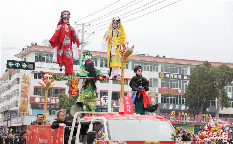 磐安、安遠(yuǎn)、禮辛三鎮(zhèn)聯(lián)合打造的高臺(tái)方陣同樣吸睛奪目,藝人將戲劇人物、神話傳說以驚險(xiǎn)奇巧的造型凌空呈現(xiàn),端坐高架的孩童揮手致意,成為街頭極具視覺沖擊力的流動(dòng)風(fēng)景,彰顯著民間藝人的非凡智慧與膽識(shí)。“高臺(tái)是咱們甘谷的絕活,精巧又驚險(xiǎn),老祖宗傳下來的好東西,代代都好看!”現(xiàn)場老人的稱贊道出了大家對本土非遺的喜愛。
