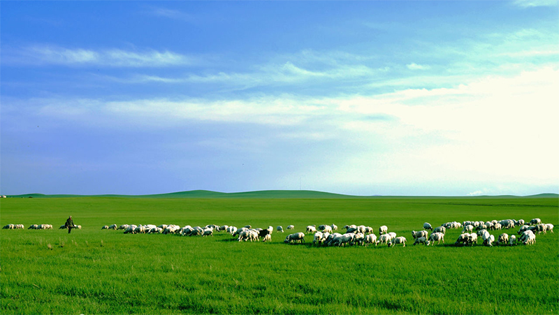 鐵絲圍欄的那一邊,幾頭牛正享受著午后的陽光。它們有的在草地上漫步,有的臥在草地上打瞌睡。一只兔子從它們面前跑過,它們沒有挪動身體,只是看了兔子一眼,就接著專注于自己的世界了。牛尾巴耷拉在身后,偶爾慢悠悠地甩起來,驅(qū)趕剛剛落在身上的飛蟲。藍(lán)藍(lán)的天上有幾朵碎云,它們也和貢格爾草原上的牛羊一樣慢慢地走著,并沒有什么事讓它們著急。