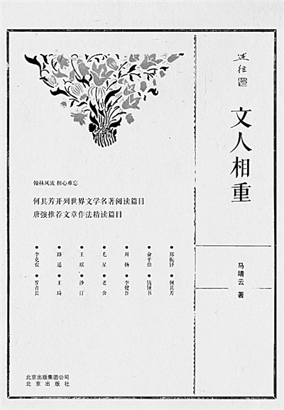 就本書作者馬靖云的潛質和文筆來說,她不應該只提供136千字的《文人相重》就戛然而止,她還應該有續(xù)篇。而今,她雖然年過九旬,卻還思維敏捷,記憶鑿鑿,筆力遒勁。就文學所而言,依然以科研為視角,至少還有兩方面的人可書寫,而且有價值、有市場。一是從延安來的、從解放區(qū)來的老革命,如王平凡、唐棣華、朱寨、賈芝、力揚,他們或當領導,或為學者,稍加發(fā)掘,均可能得富礦;二是一大群中青年學者的涌現,如曹道衡、胡念貽、劉世德、陳毓羆、蔣和森、錢中文、樊駿、袁可嘉、陳冰夷、柳鳴九、陳燊、董衡巽,等等,無不學有專攻,有故事,記錄下來,就精彩,甚至就是詩。
