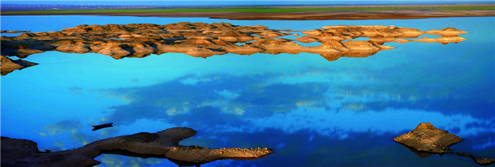 引來(lái)弱水三農(nóng)幸,澆灌千千頃。贊塞上春光,綠水青山,早靚原荒憬。