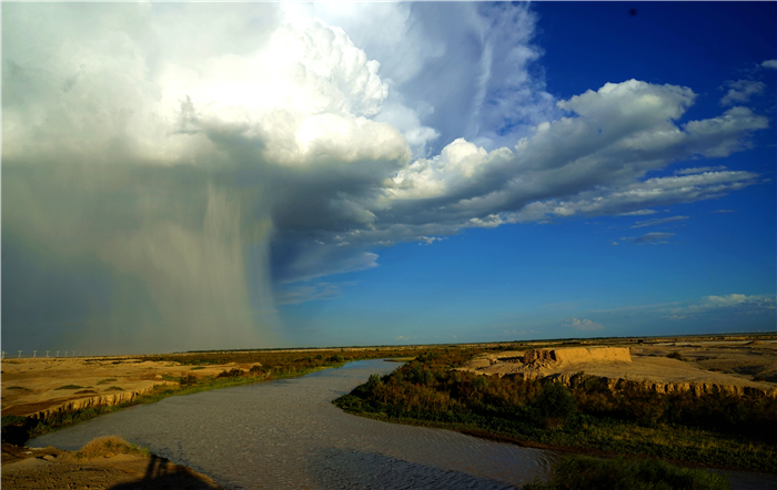 戈壁晚霞和暮鼓,疏勒河流古。聽靜水流深,百轉(zhuǎn)千回,澤潤(rùn)荒原土。