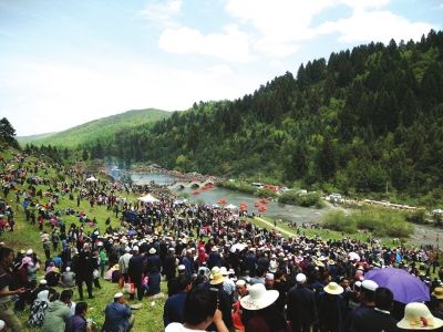 花兒是山歌的一種,亦叫“山曲”“少年”“野曲”,適合田間地頭勞作中演唱的小曲。它誕生于一千七百多年的西晉永嘉末年,其祖源《阿于歌》,由鮮卑族慕容部創(chuàng)作,傳至隴上今甘肅岷縣一帶的吐谷渾部落,被廣泛傳唱。岷州二郎山五月十七花兒會最早源于岷縣的祭神賽會,據(jù)考證其形成時間為明代,參與民眾達十萬余人,是國家級非遺項目。此刻的二郎山成了花兒的世界,人的海洋,從山腳至山頂歌子海潮般涌動著,來自岷州各地的民間歌手五個一伙,十個一群,對歌賽花兒。置身于情歌的海洋,你會不由自主還原到最初的自己,放開喉嚨高歌一曲,熱辣的歌聲仿佛冬日的暖陽,喚醒沉睡的情感,被花兒撫慰過的心靈柔軟豐盈。