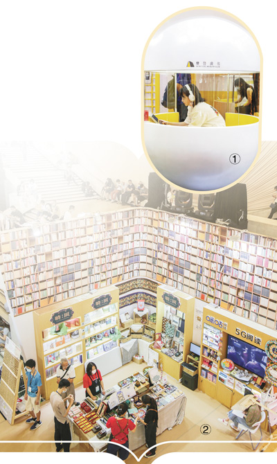 圖①:讀者在上海書(shū)展現(xiàn)場(chǎng)體驗(yàn)“未來(lái)自習(xí)室”。