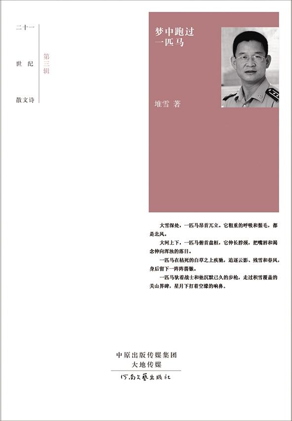 1995年8月,身為陸軍裝甲兵的堆雪,考入蚌埠坦克學(xué)院學(xué)習(xí)“坦克指揮”專業(yè)。在此期間,他利用閑余時(shí)間潛心詩歌創(chuàng)作?!恫菰贰段鞅憋L(fēng)》《在大西北》《這些年在西北》《槍在我的生活里》《和平》等一批具有濃郁西北地域特色和軍旅鐵血?dú)赓|(zhì)的詩篇相繼在《星星》《西北軍事文學(xué)》《詩刊》等處發(fā)表。這些作品,以低姿匍匐的戰(zhàn)術(shù)姿態(tài),不斷地接近當(dāng)代詩歌的前沿陣地。