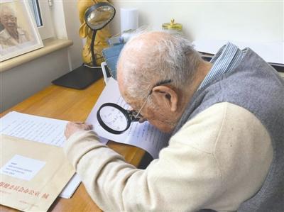 “我雖然歲數(shù)很大,身體不好,眼睛近瞎,但是我仍然堅(jiān)持在北大養(yǎng)成的習(xí)慣,學(xué)習(xí),學(xué)習(xí)再學(xué)習(xí),眼睛看不清楚,我用放大鏡也要讀書。”說(shuō)著,馬識(shí)途拿起了身邊的放大鏡示意。