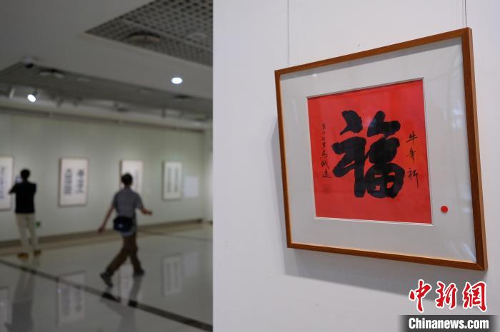 圖為觀眾在書法展上拍照留念?!『闻罾?nbsp;攝
