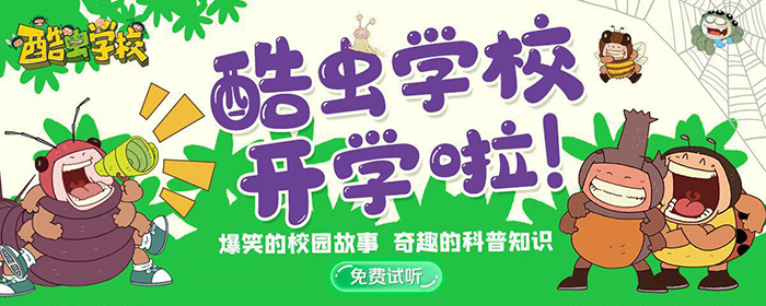 根據(jù)原創(chuàng)昆蟲科普知識(shí)爆笑校園漫畫改編的《酷蟲學(xué)校科普有聲故事》,以爆笑幽默的校園故事、新奇有趣的科普知識(shí)、廣播劇標(biāo)準(zhǔn)的精心制作等特點(diǎn),激發(fā)小讀者對(duì)大自然的熱愛,建立生態(tài)文明的宏觀觀念。