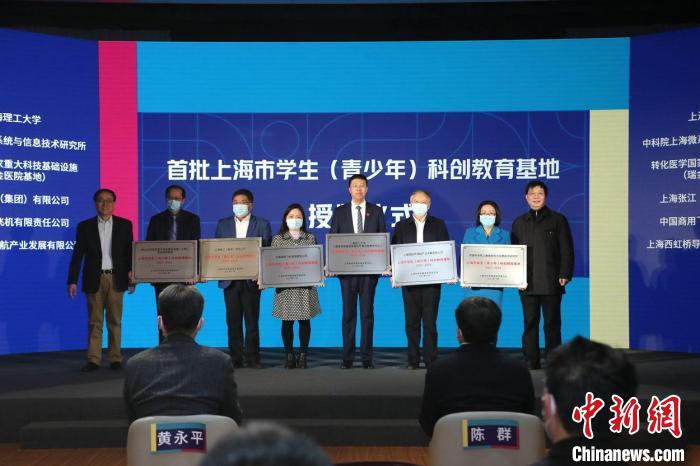 首批上海市學生(青少年)科創(chuàng)教育基地代表獲授牌。 上海市科技藝術教育中心供圖