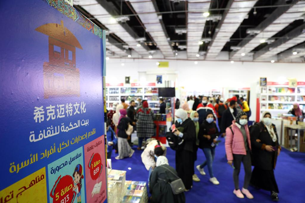 2月4日,在埃及開(kāi)羅舉辦的開(kāi)羅國(guó)際書(shū)展上,人們走過(guò)中國(guó)圖書(shū)展位。新華社發(fā)(艾哈邁德·戈馬攝)