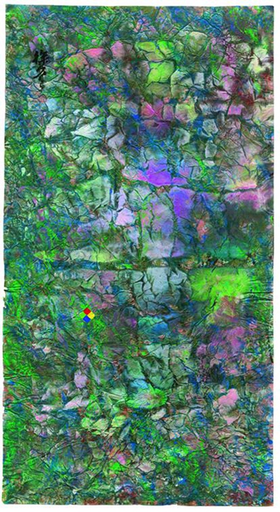 徐冬冬認(rèn)為,二十四節(jié)氣歷史悠久,可追至上古時(shí)代,蘊(yùn)含著對(duì)天地萬物生命起源的哲學(xué)認(rèn)知。中國抽象繪畫,畫的是生命本質(zhì)的生生滅滅。畫的是“空”,而不是“色”。他告訴記者,在創(chuàng)作這組畫時(shí),他會(huì)細(xì)致捕捉依次出現(xiàn)的時(shí)令、氣候、物候的變化,通過八識(shí)中的“眼、耳、鼻、舌、身、意”來感受大自然的氣息,然后用抽象的筆觸呈現(xiàn)在畫紙上。“我就像是一臺(tái)感應(yīng)器,每一個(gè)汗毛孔都在感受著天地的氣息。”徐冬冬說。作畫的宣紙經(jīng)過特殊處理,也有了肌理和紋路,色彩濃烈的畫作仿佛有了生命,似乎在呼吸伸展。