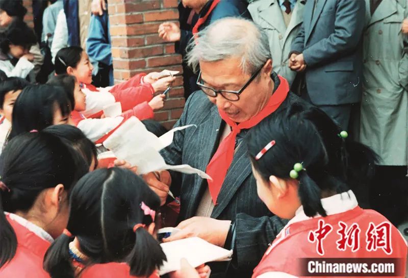 任溶溶為學(xué)生簽名。中新社發(fā) 受訪者 供圖