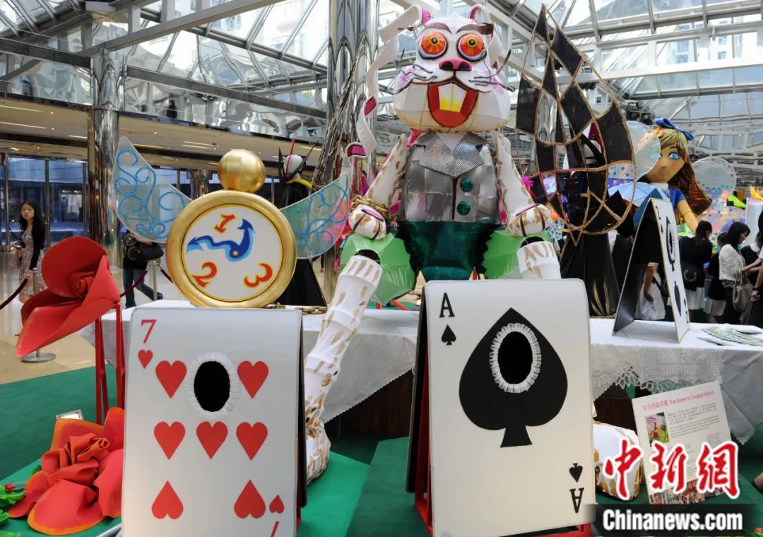 以西方著名兒童文學(xué)作品《愛麗絲夢游仙境》為藍本創(chuàng)作了巨型木偶及巡游藝術(shù)品在香港太古城中心亮相。中新社記者 任海霞 攝