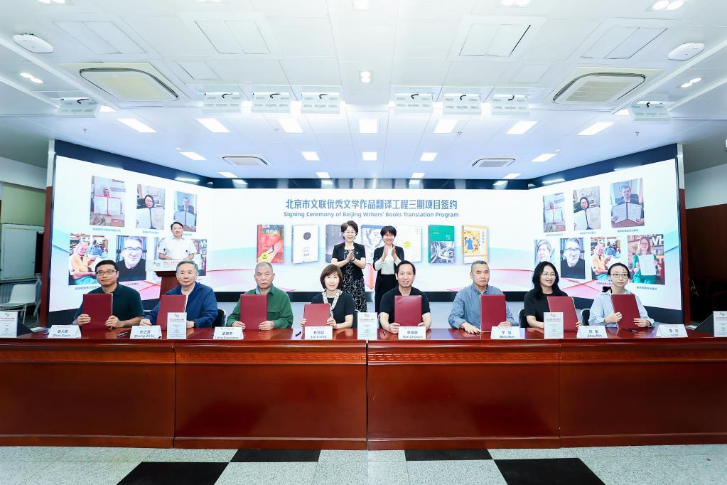 開幕式上,發(fā)布了北京市文聯(lián)優(yōu)秀文學作品翻譯工程圖書成果,周曉楓《星魚》意大利文版和英文版、葉廣芩《花貓三丫上房了》法文版、星河《北京小子》阿文版集中亮相。梁曉聲《我和我的命》、張之路《吉祥時光》、格非《月落荒寺》、畢淑敏《預約死亡》、肖復興《我們的老院》、張悅?cè)弧段已鸸舛鴣怼贰幙稀睹擅嬷恰?部作品簽署版權輸出協(xié)議,這些優(yōu)秀文學作品即將“走出去”與海外讀者見面。