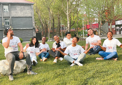 對漢語非母語的中文學習者來說,學習中國古詩詞,可以領(lǐng)略中華文化的魅力。圖為今年4月,北京第二外國語學院漢語學院的來華留學生在校園中排練詩歌吟唱。