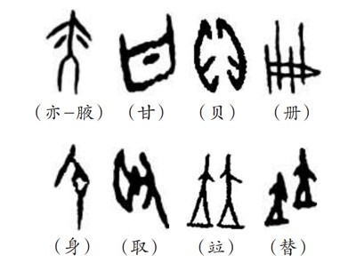 “象形者,畫成其物,隨體詰詘”(《說文·敘》),是根據(jù)客觀物象的形態(tài)輪廓來構(gòu)成文字符號(hào)的方法。象形字又稱作“文”,“文者,物象之本”。如“貝”就是一個(gè)海貝的象形,也指貨幣;“冊(cè)”,就是由竹簡編起來的簡冊(cè)的象形;“身”為妊娠的形象,突出腹部。