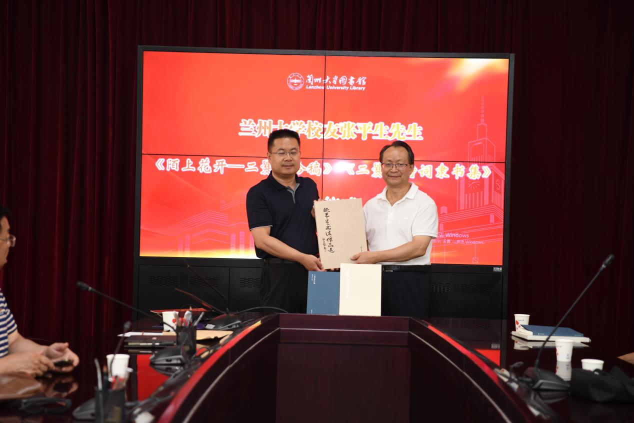 蘭州大學(xué)圖書館及直屬單位黨委書記王偉國向張平生頒發(fā)收藏證書