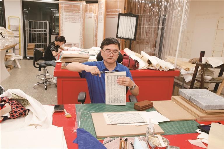 “修書就好似修心。”如今,已參加工作30多年的何謀忠剛剛接連辦理完退休、返聘手續(xù)。“這一輩子已經(jīng)習慣了,最喜歡做的事就是坐下來靜靜修書,看到殘破的書葉在自己手下整理恢復(fù),是最心情舒暢的事。當然,修書不僅是修心,還肩負著傳遞文脈、保其不朽的責任。”