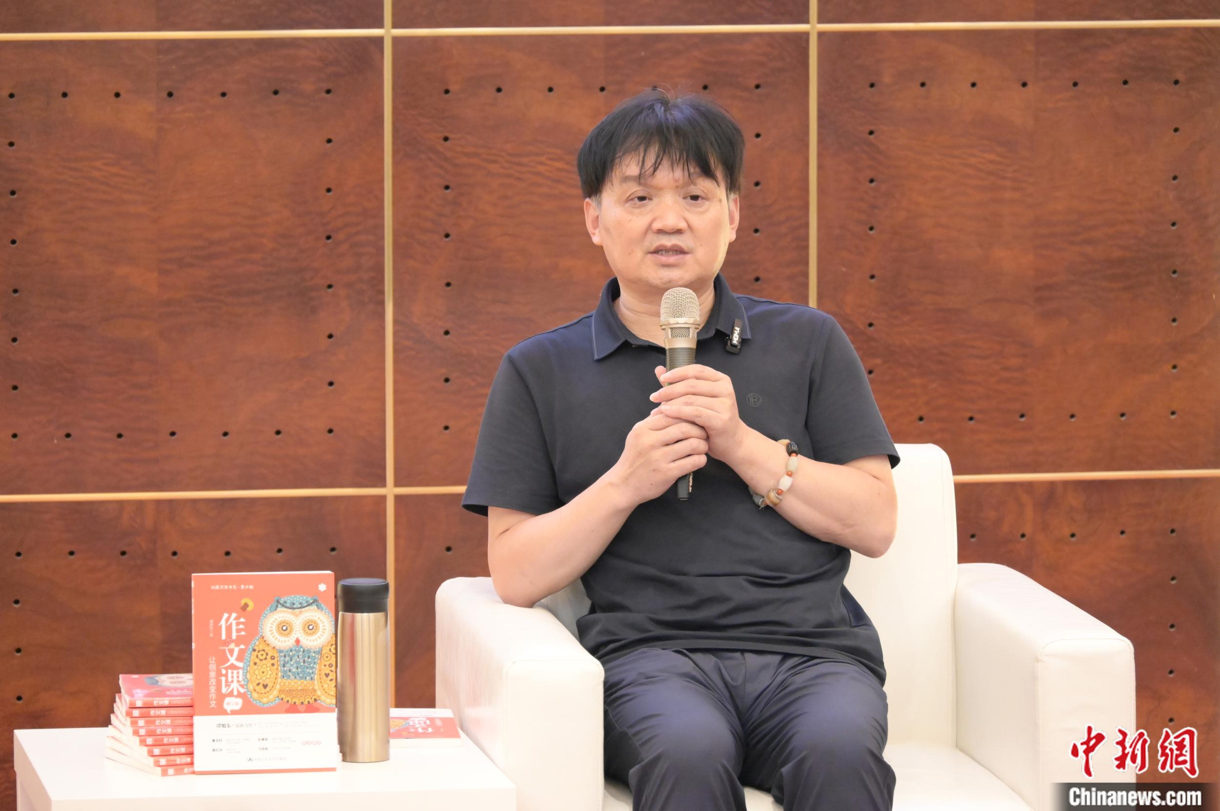 中新網(wǎng)8月22日電 8月19日晚,魯迅文學(xué)獎(jiǎng)得主、上海大學(xué)文學(xué)院教授、博士生導(dǎo)師譚旭東攜新作《作文課:讓創(chuàng)意改變作文》,走進(jìn)上海書展,暢談家庭語(yǔ)文教育。譚旭東以自己多年指導(dǎo)中小學(xué)語(yǔ)文教育的經(jīng)歷與大家分享:家庭語(yǔ)文讀寫的培養(yǎng),對(duì)孩子的成長(zhǎng)和語(yǔ)文的進(jìn)步,都非常關(guān)鍵。
