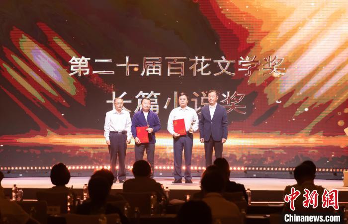 9月19日,第二十屆百花文學獎頒獎典禮在天津舉辦?!D為長篇小說獎頒獎儀式?!≈行律缬浾?nbsp;王在御 攝