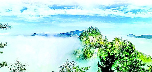 然而,天水石門山的饋贈還不止這些。由于石門山地理位置特殊,宜人的氣候經(jīng)常會造就氣勢磅礴的浩瀚云海。云海平靜時,云霧便在半山腰停住腳步。站在山巔遠眺,只見腳底下半山腰白霧團團,感覺自己在云山之巔,飄飄欲仙。“不知天上宮闕,今夕是何年?”此情此景,比畫更有靈氣,比詩更具意境。置身其中,感覺空氣都被浸潤得芳香四溢,令人心曠神怡。