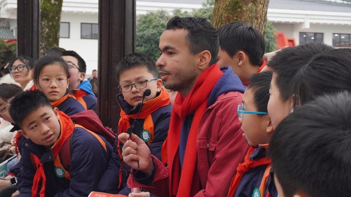 走出場(chǎng)館,中外青年圍坐在雷鋒紀(jì)念館外的長(zhǎng)廊暢聊雷鋒精神。在分享初到中國(guó)時(shí)迷路,被身邊一位“活雷鋒”幫助的故事時(shí),來(lái)自阿爾及利亞的留學(xué)生名善深有體會(huì)地說(shuō)到:“真正的善行是發(fā)自內(nèi)心、純粹無(wú)私的。”交流中,不一樣的面孔也吸引了來(lái)自株洲市荷塘小學(xué)小朋友們的關(guān)注,在文化擺渡者志愿服務(wù)隊(duì)的翻譯下,留學(xué)生們與小朋友們打破了語(yǔ)言的壁壘,實(shí)現(xiàn)了關(guān)于雷鋒精神內(nèi)涵的無(wú)障礙交流。