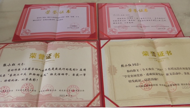 一分耕耘,一分收獲,機會總給有心人。如今,張小紅加入了靖遠(yuǎn)縣作家協(xié)會、白銀市作家協(xié)會、白銀市文藝評論家協(xié)會成為了會員,也增選為靖遠(yuǎn)縣政協(xié)委員。她的作品散見于《白銀文學(xué)》《烏蘭》等報刊雜志以及“靖遠(yuǎn)作協(xié)”“隴上風(fēng)情”“黃土情文學(xué)”等文學(xué)公眾號;部分作品榮獲靖遠(yuǎn)縣建黨100周年“學(xué)黨史頌黨恩·述成績謀發(fā)展”征文二等獎,“喜迎二十大·教壇著華章”《未來導(dǎo)報》有獎?wù)魑膬?yōu)秀獎等……