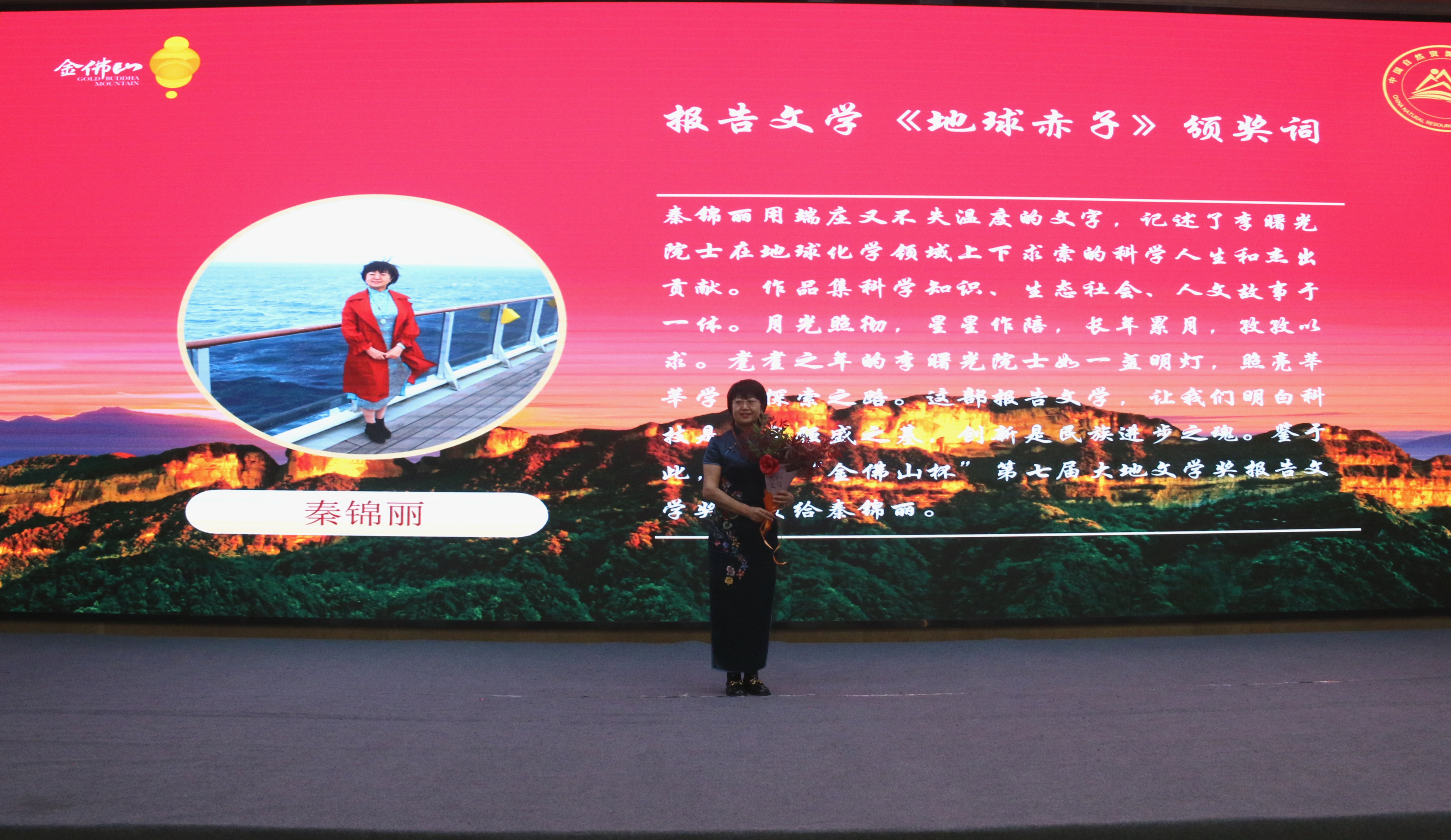 中國甘肅網(wǎng)4月28日訊 4月25日,“金佛山杯”第七屆大地文學(xué)獎(jiǎng)?lì)C獎(jiǎng)暨金佛山中國自然生態(tài)文學(xué)創(chuàng)作基地授牌儀式在重慶市南川區(qū)舉行。甘肅作家秦錦麗獲“金佛山杯”第七屆大地文學(xué)獎(jiǎng)報(bào)告文學(xué)獎(jiǎng)。