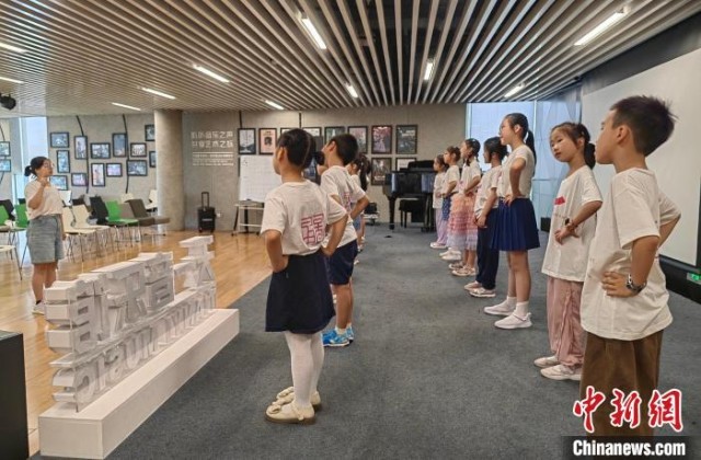 寧波圖書館的“天一童藝”公益項目現場,孩子們跟著老師學唱由《千字文》改編的歌曲?!≈行戮W記者 應妮 攝