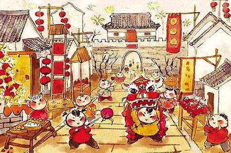 轉(zhuǎn)眼到了大年三十,俗稱“除夕”,黑河流域除舊迎新的主要活動(dòng),都集中在這一天進(jìn)行。父親一大早就帶我們揭去墻上的舊畫,貼上新買的年畫;窗戶蒙上新紙,貼上母親親手剪的窗花。母親勤勞淳樸心靈手巧,剪出的窗花有“孫猴子摘桃”“孔雀嬉牡丹”,特別是小豬、小狗、小老虎圖案,栩栩如生活靈活現(xiàn)。做完這一切,已經(jīng)到了晌午時(shí)分,父親便急急忙忙帶我們貼春聯(lián)、貼門神。父親說門神是守護(hù)門庭的衛(wèi)士,左邊貼“白臉兒”,右邊貼“黑臉兒”,象征財(cái)源廣進(jìn)家道平安。我們將一副秦瓊和尉遲恭的門神,端端正正貼上莊門扇,滿院子紅紅的對(duì)聯(lián),滿屋子嶄新的年畫和窗戶上鮮艷的窗花,為節(jié)日披上了盛裝,喜氣洋洋。