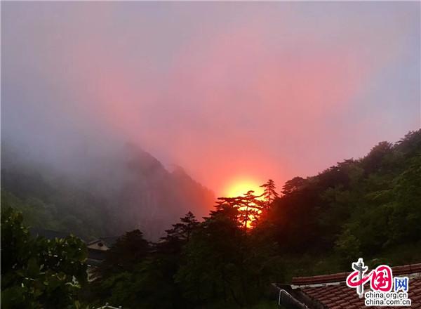 每逢五月,杜鵑花如約而至,用思慮了一冬的巧思把黃山的每一個(gè)角落都裝扮一新,給連綿不絕的山崗披上了五彩的織錦。經(jīng)過了一冬的蟄伏和等待,杜鵑鉚足了勁兒,花團(tuán)錦簇的熱情如“燃”起的火把,紅透了半邊天。黛青色的遠(yuǎn)山縹緲幽遠(yuǎn),參天的松柏枝繁葉茂,淡而薄的云霧似有還無,杜鵑的姹紫嫣紅給黃山這幅意蘊(yùn)悠長的水墨畫增添了幾分濃墨重彩,黃山更加靈動秀美了。最壯觀的當(dāng)屬日出日落時(shí)分了,天邊的紅霞好似在花枝間流連,墜入花叢般和散落一地的杜鵑相互輝映、渾然一體。