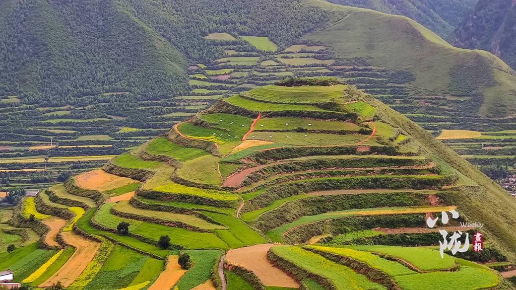 行走在冶力關(guān),目之所及皆是美景,在半山腰上向遠(yuǎn)處眺望,只見遠(yuǎn)山層巒疊翠,云蒸霞蔚,梯田綠黃交錯(cuò),如詩如畫。