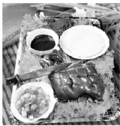 有人考證,這種烹飪技藝源于周代“八珍”之一的“炮豚”。“炮豚”之法,是“實(shí)棗于其腹中”;“火燒”之法則是涂調(diào)料于腹,而且投入鍋中煮“三日三夜”。