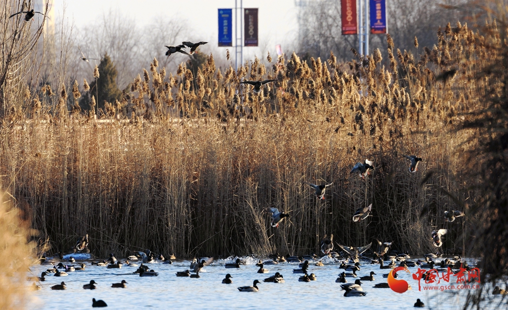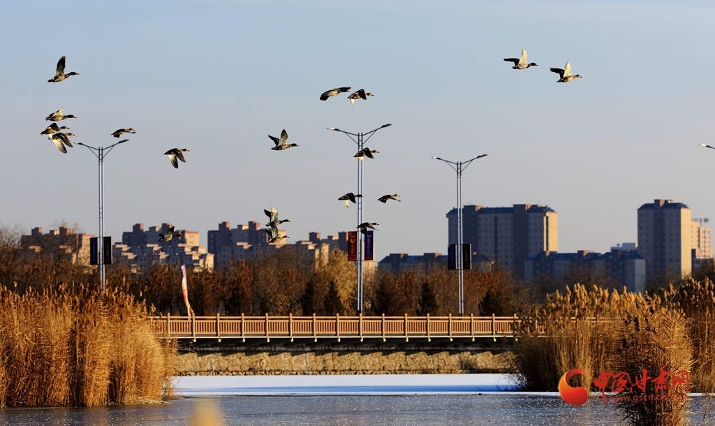 12月15日,張掖國家濕地公園蘆葦蕩漾,野鴨戲水覓食,呈現(xiàn)出一派充滿活力的蘆葦野鴨戲水圖,為冬日的濕地公園增添了新的趣味。