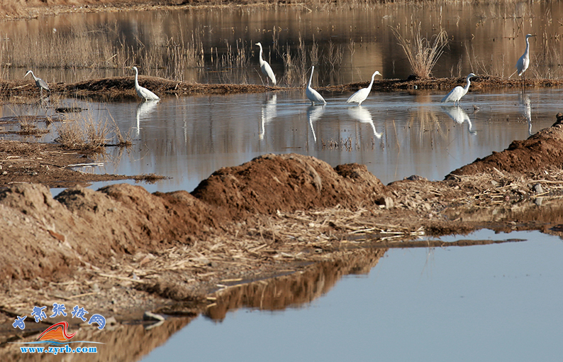 初春時(shí)節(jié),山丹縣祁家店水庫(kù)濕地成百上千的天鵝、白鷺、灰鶴、野鴨等幾十種鳥類成群結(jié)對(duì),引頸高歌,或追逐覓食,或結(jié)伴翱翔,成為一道亮麗的風(fēng)景線。