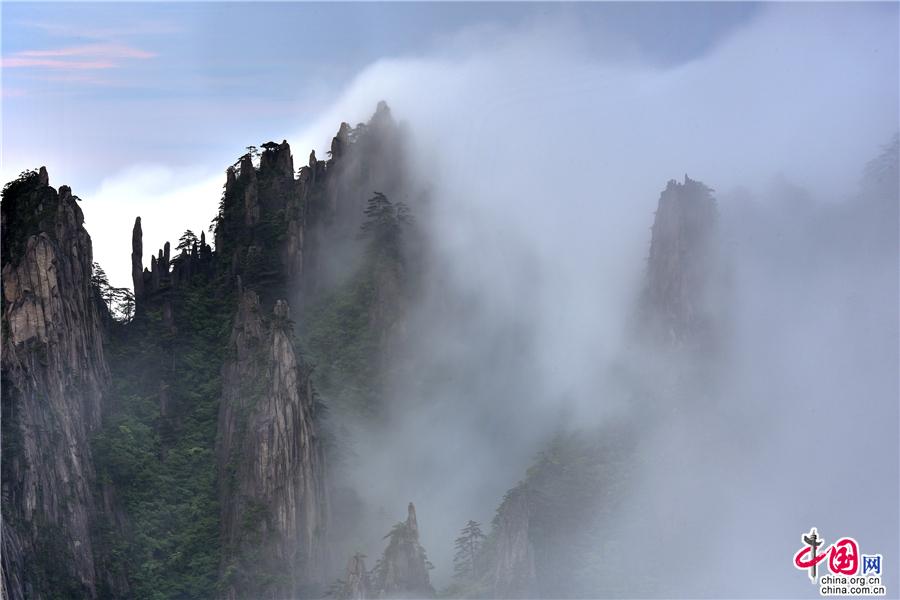 5月22日傍晚,雨后安徽黃山風(fēng)景區(qū)現(xiàn)壯觀的云海奇觀,見云海奔騰而來,越過北海的始信峰,沿著群峰傾瀉而下勢如瀑布之壯觀,在奇群、怪石和形態(tài)各異黃山松的作用下勾勒出一幅幅流動(dòng)的水墨畫;黃山不僅是云霧之鄉(xiāng),更是中國傳統(tǒng)水墨畫的天然的素材。(姚育青)