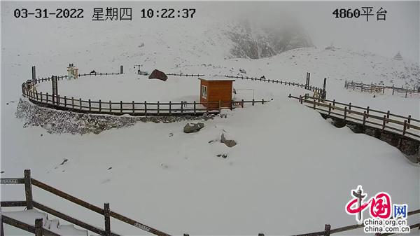 原標(biāo)題:春雪如約而至 達(dá)古冰川邀你一起過清明小長假